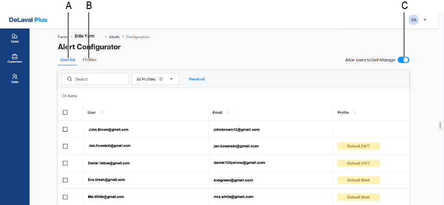If a Farm Owner/Manager decides to switch on the Self - Managed function for the farm, all Farm Users can create personal profiles and adjust them themselves.