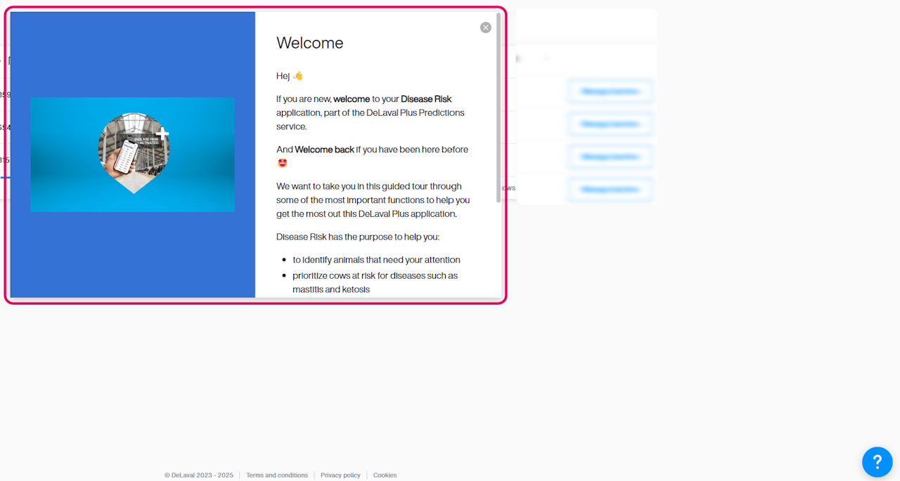 The guided tours in DeLaval Plus, which teach you how to navigate the applications, will always be available on the application Pills.