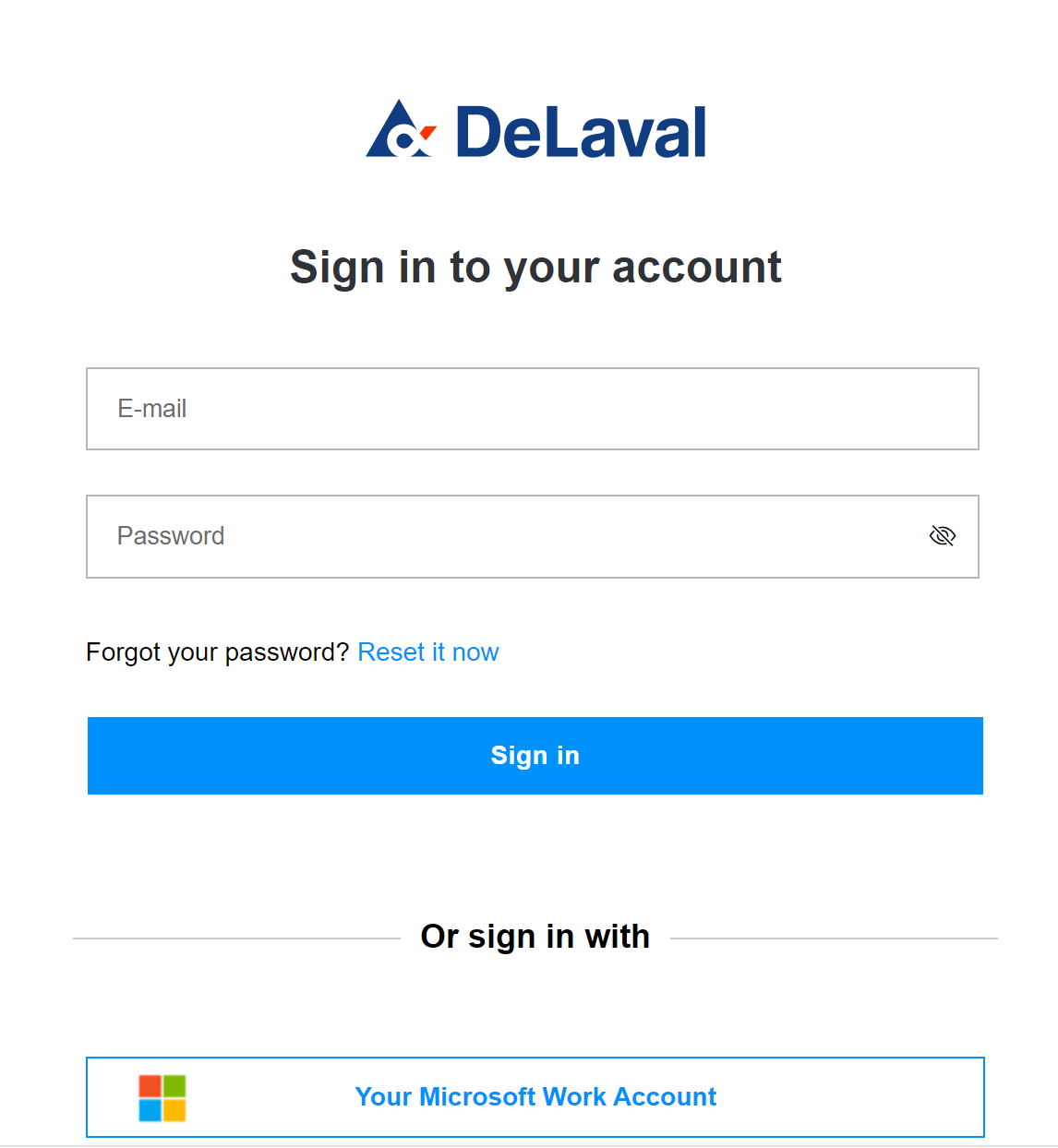 The procedure below shows how you can reset your password in DeLaval Plus and set a new one.