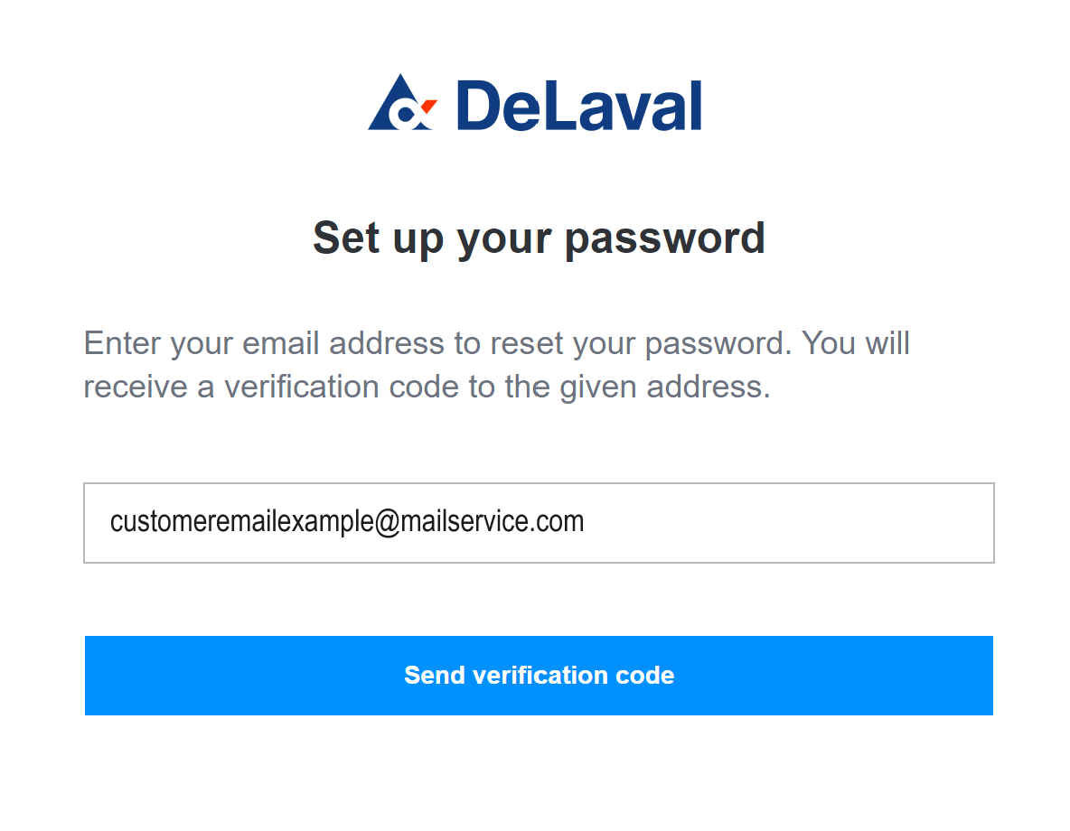 Enter the e-mail address that you used to register your DeLaval Plus account and click Send verification code.