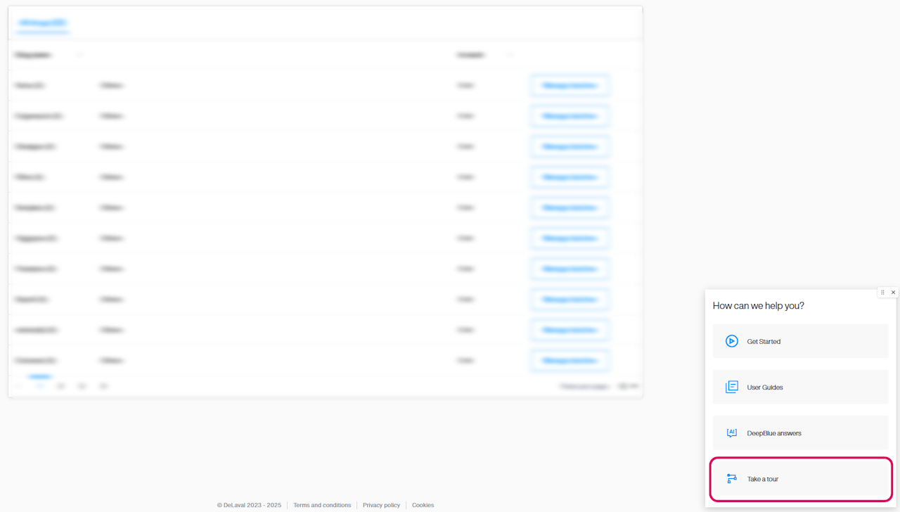 The guided tours in DeLaval Plus, which teach you how to navigate the applications, will always be available on the application Pills.