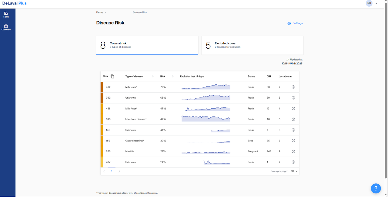 Disease Risk on rakendus, mis aitab teil leida lehmi, kellel on mastiidi, ketoosi või muude haiguste oht.