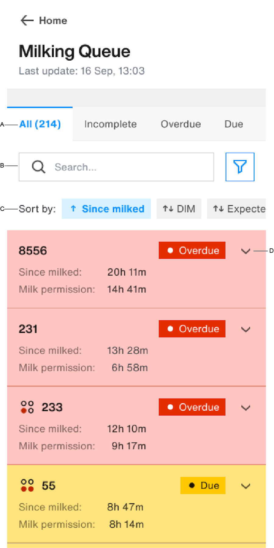 Hyvin hallittu lypsyjono auttaa seuraamaan jokaisen lehmän tilaa ja edistymistä tarjoamalla reaaliaikaista tietoa viimeisimmistä lypsyajoista, maitotuotoksista ja tulevista lypsyaikatauluista. Järjestelmä mahdollistaa viivästyneen lypsyn riskiryhmään kuuluvien lehmien tunnistamisen varhaisessa vaiheessa, mikä varmistaa oikea-aikaiset toimenpiteet karjan terveyden ja tuottavuuden ylläpitämiseksi.