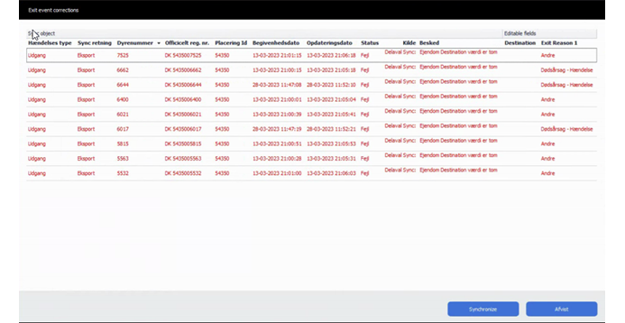 Jos Poiston syy - tai Määränpää -kenttää jää täyttämättä tapahtuman tallennuksen yhteydessä, avautuu Syncissä ikkuna, jossa tiedot voidaan täydentää.