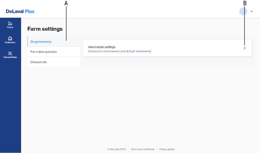 Applikationen Drug Inventory låter dig utse en standardveterinär för din gård. Veterinärdata importeras från DelPro och tilldelas varje behandling i loggboken.